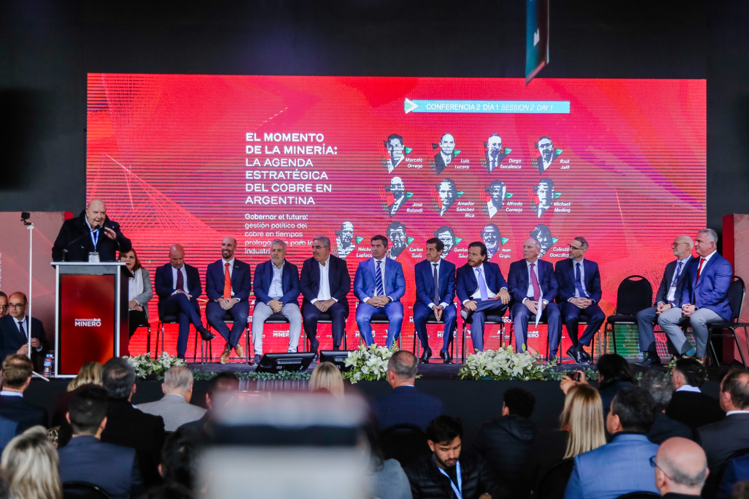 Estuvieron presentes el gobernador Marcelo Orrego, el vicegobernador Fabián Martín; ministro de Minería, Juan Pablo Perea; el secretario de Minería de la Nación, Luis Lucero; el vicejefe de Ministros de la Nación, José Rolandi; el titular de la Agencia Argentina de Inversiones, Diego Sucalesca; el embajador de la Unión Europea en Argentina Amador Sánchez Rico; y los gobernadores Alfredo Cornejo (Mendoza); Raúl Jalil (Catamarca); Carlos Sadir (Jujuy) y Gustavo Sáenz (Salta). Además, la directora General de Panorama Minero, Celeste González.
