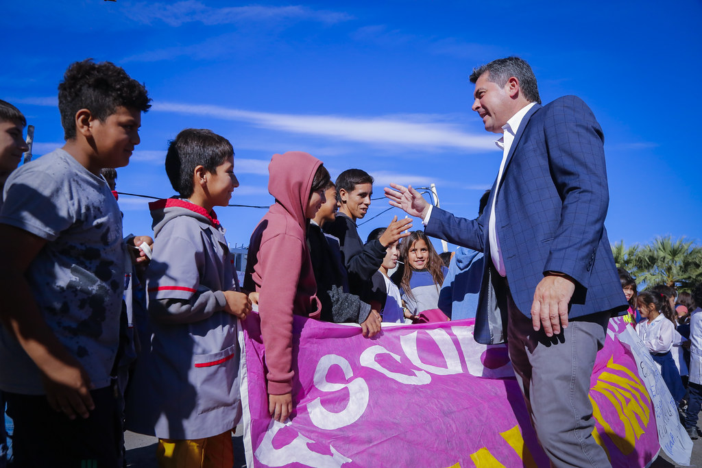 Previo a llegar al club Sportivo Huarpe, donde se desarrolló la actividad, Orrego visitó la escuela Paulo VI, que se encuentra en esa localidad.