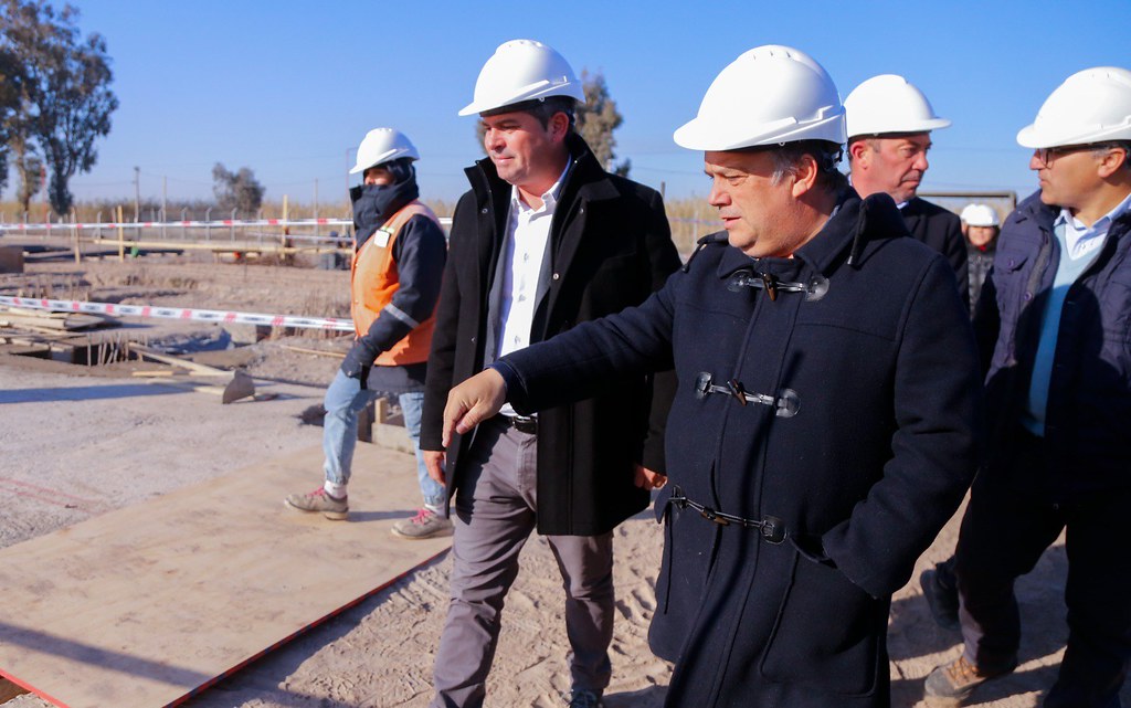 El gobernador Marcelo Orrego recorrió la obra del Hospital de Angaco que se encuentra en calle Divisoria y Segovia. Se trata de una construcción que en la actualidad tiene un avance del 19% y es una de las que se reactivó por gestiones del primer mandatario provincial. Acompañaron los ministros de Salud, Amilcar Dobladez; de Infraestructura; Fernando Perea; director de Ejecución de Obras, Sebastián Videla; subdirectora de ejecución de Obras, Guadalupe Ariza.